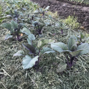 Wo die Jungpflanzen schon groß genug sind, bekommt der Boden eine Schicht aus Rasenschnitt als Mulchdecke – hier beim Kohlrabi, aber auch bei Tomaten, Kürbis, Brokkoli. Das hat mehrere Vorteile. Am wichtigsten für mich ist, dass der Boden nicht so schnell austrocknet und damit weniger bewässert werden muss. Außerdem ist das organische Material Futter für die Bodenlebewesen, die Humus bilden und Nährstoffe freisetzen – also natürlicher Dünger.