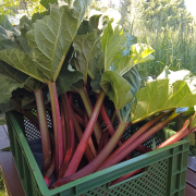 Heute ist endlich Ernten angesagt! In der ersten Gemüsekiste gibt es u.a. Rhabarber, Salat, Schnittknoblauch, Spinat, Radieschen. Zwar kommt die erste Lieferung mit zwei Wochen Verzögerung – kein Wunder bei dem nassen und kalten Frühjahr – dafür aber schießt jetzt alles umso schneller. Ich habe heute sogar schon die erste rote Erdbeere entdeckt! Wer für diese Saison noch eine Abokiste möchte – einfach melden – es gibt noch freie Plätze.